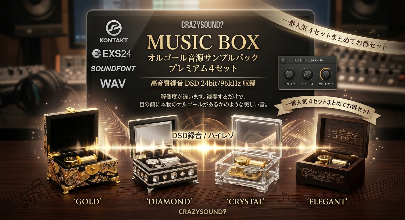 オルゴール・MUSICBOX音色と比較用に他の音色もご試聴ください。 DSD録音オルゴール音源『プレミアム4』4点セット『GOLD』『DIAMOND』『CRYSTAL』 CRAZYSOUND?/DTM...